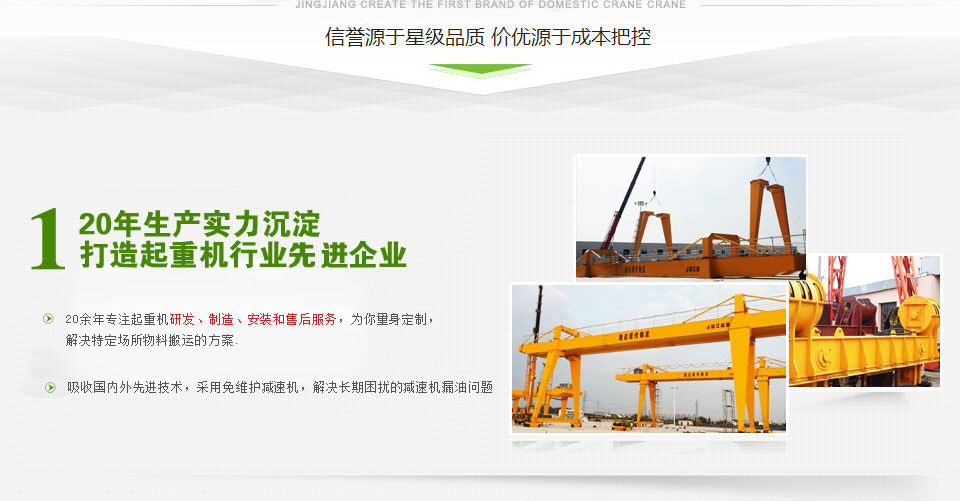 靖江市起重設備廠家直銷懸臂起重機、固定式懸臂起重機、單雙梁橋式起重機、簡易門式起重機、電動葫蘆門式起重機型號齊全,價格合理 - 座落在美麗富饒的江浙平原,魚米之鄉(xiāng)--江蘇省靖江市,位于長江之濱。毗鄰江陰長江公路大橋, 與江陰、張家港隔江相望,緊鄰上海、南京、蘇州、無錫等發(fā)達的大中城市,經(jīng)濟環(huán)境和地理位置得天獨厚。 緊靠京滬、寧通高速公路 公路和水路交通極為便利。
